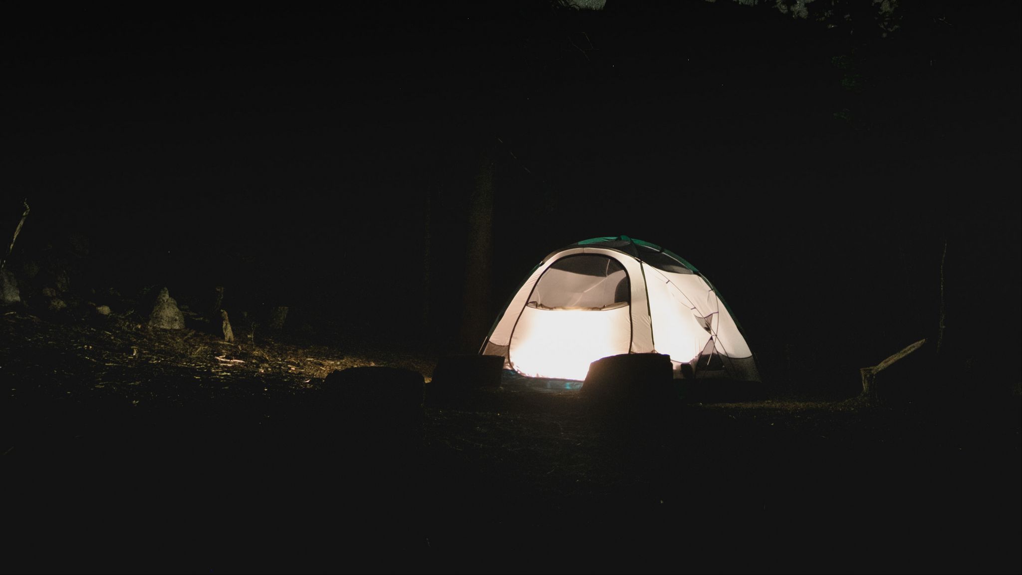 Download 2048x1152 tent, trees, silhouettes, night, dark wallpaper, background ultrawide monitor