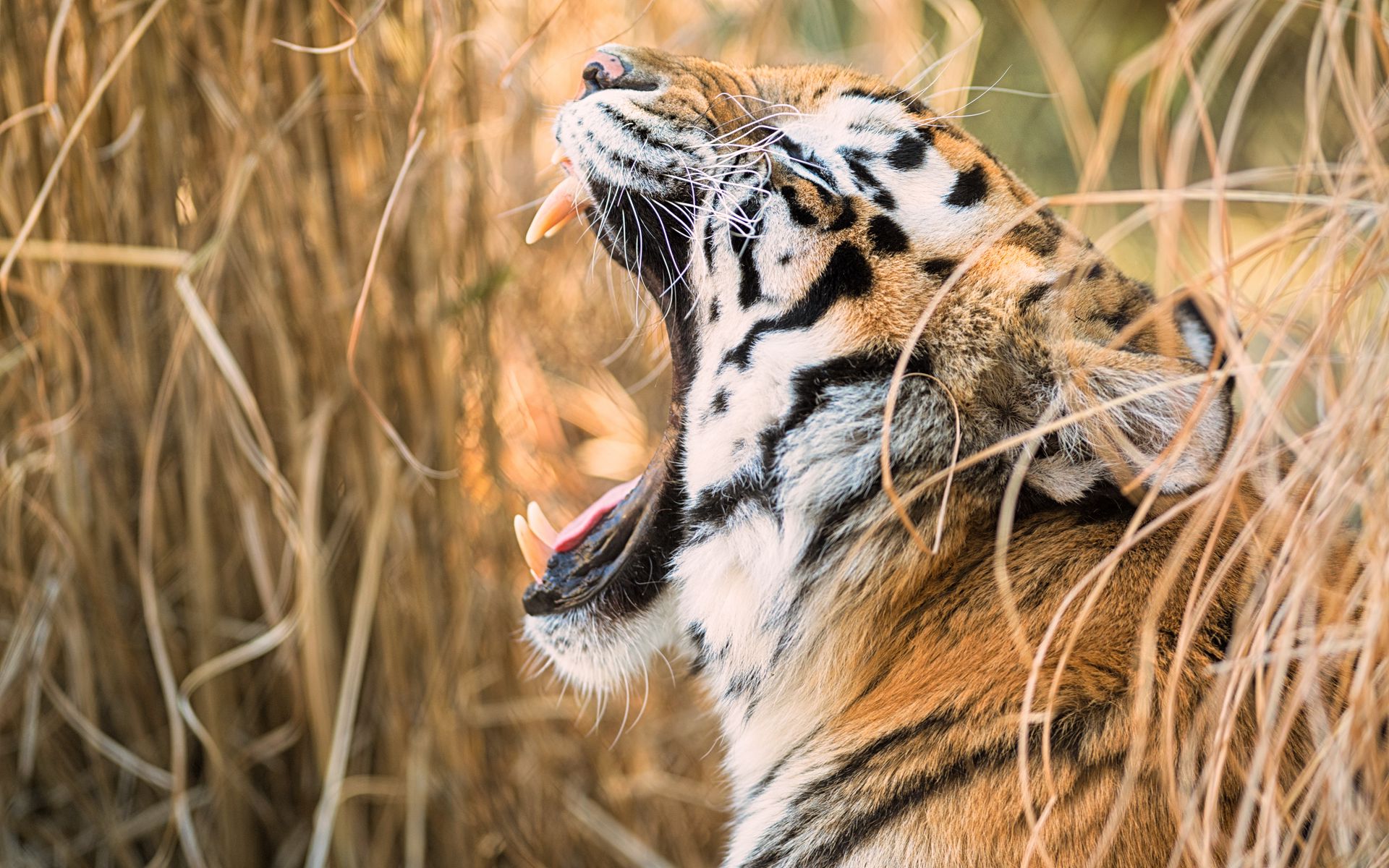 Download 1920x1200 tiger, grin, canines, predator, muzzle, profile wallpaper, background widescreen 16:10