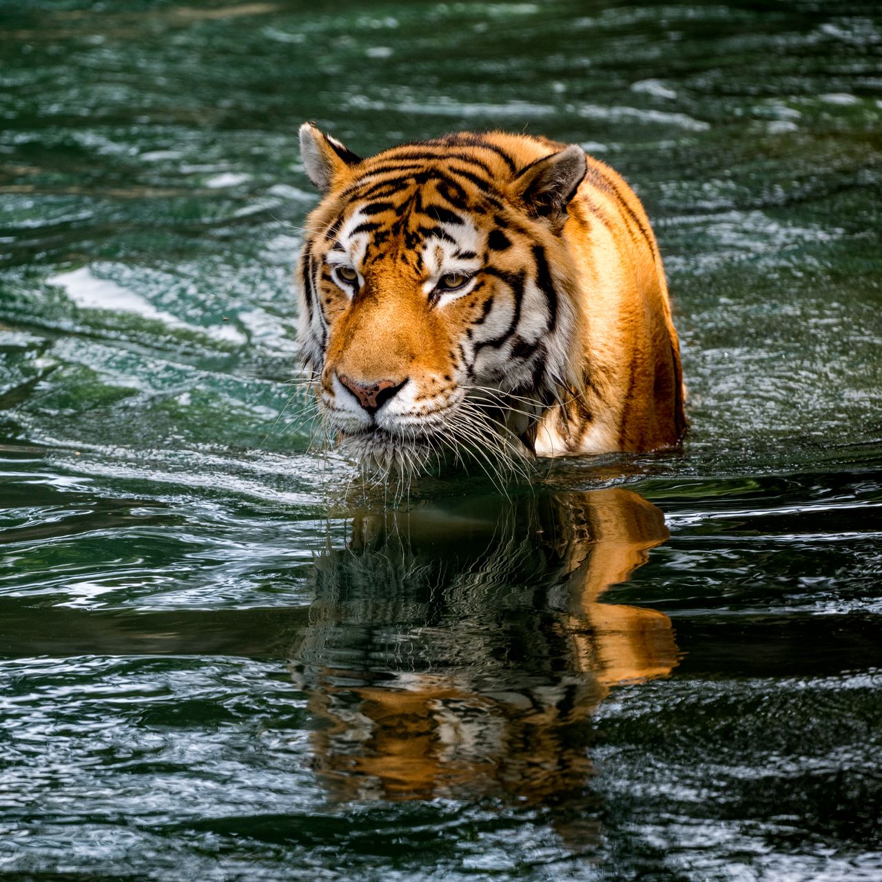 Download 1280x1280 tiger, predator, big cat, animal, wet, pond, water wallpaper, background ipad, ipad 2, ipad mini for parallax