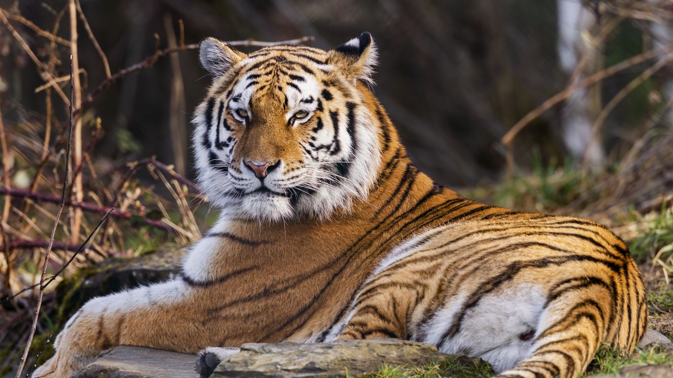 Download 1366x768 tiger, predator, big cat, animal, pose wallpaper, background tablet, laptop