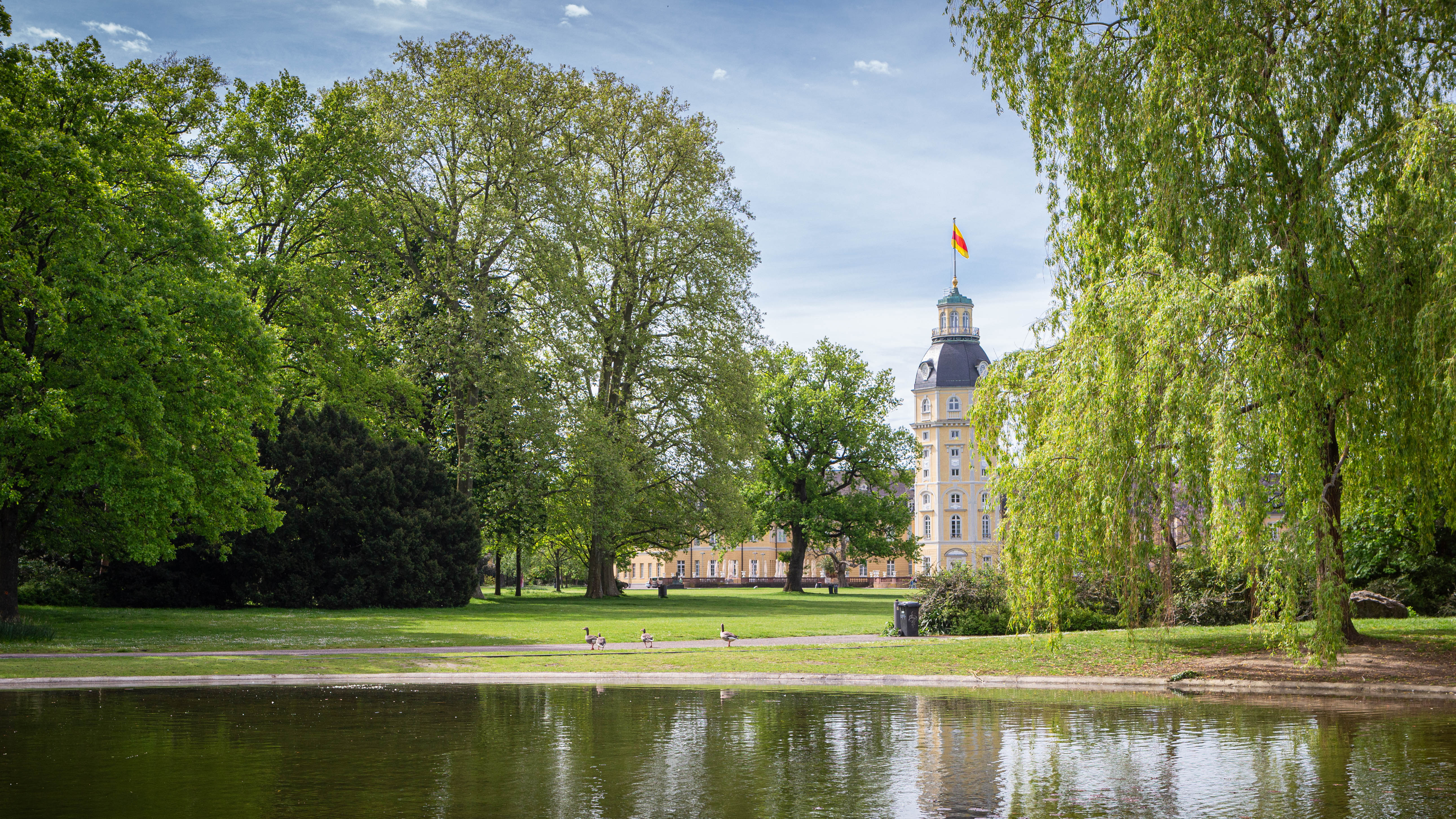 Download 5164x2905 tower, building, pond, park wallpaper, background