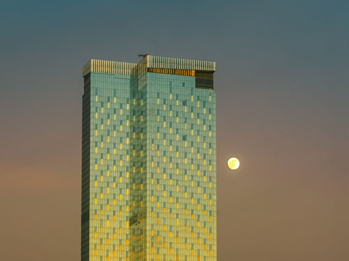 Download 1152x864 tower, moon, building, architecture wallpaper, background standard 4:3