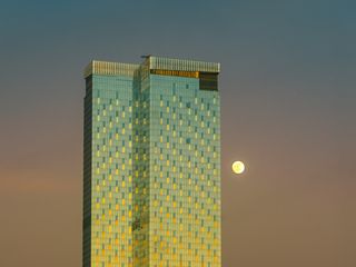 Download 320x240 tower, moon, building, architecture wallpaper, background nokia e72, e71, asha, alcatel onetouch
