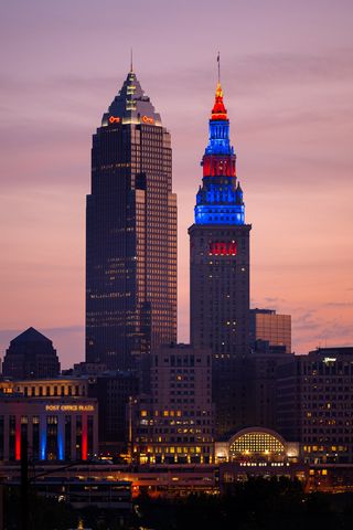 Download 320x480 towers, buildings, lights, city, twilight wallpaper, background samsung galaxy ace gt-s5830, sony xperia e, miro, htc wildfire s, c, lg optimus