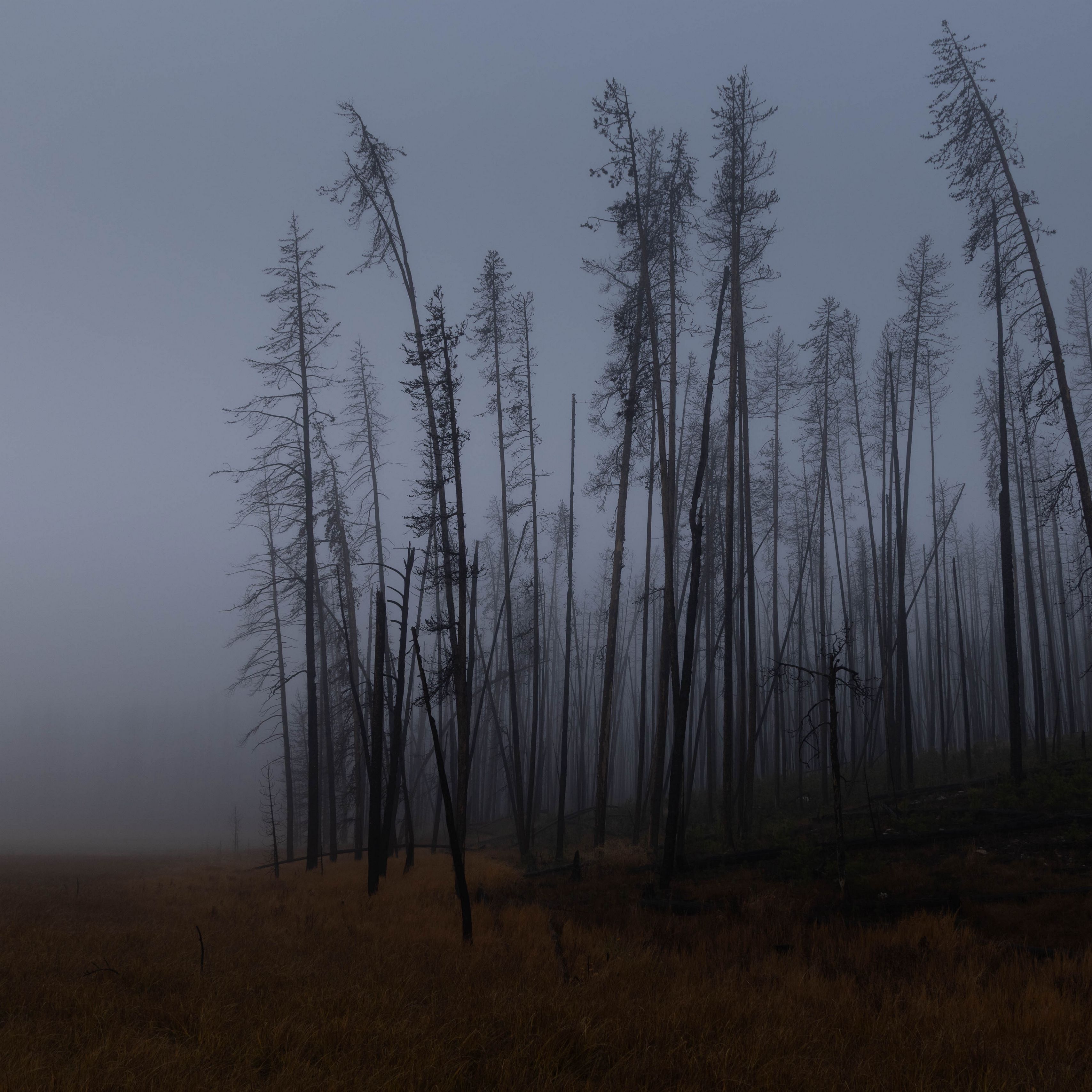 Download 3415x3415 trees, branches, field, forest, fog, dark, nature wallpaper, background ipad pro 12.9" retina for parallax