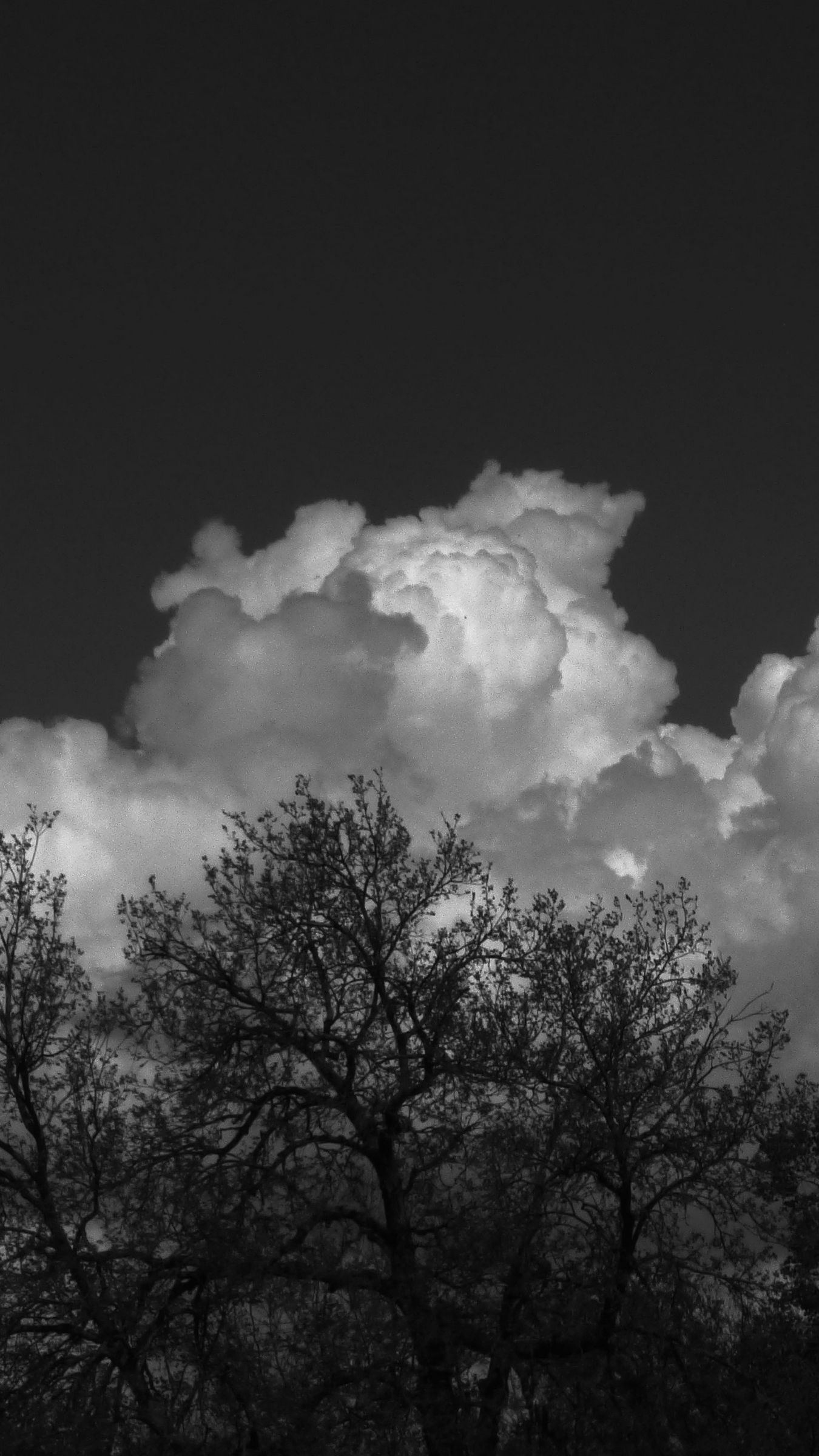 Download 1350x2400 trees, forest, clouds, sky, bw wallpaper, background iphone 8+/7+/6s+/6+ for parallax
