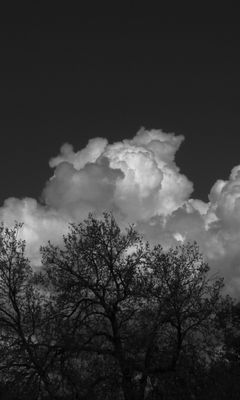 Download 240x400 trees, forest, clouds, sky, bw wallpaper, background nokia asha 311, samsung galaxy 580, omnia, lg kp500