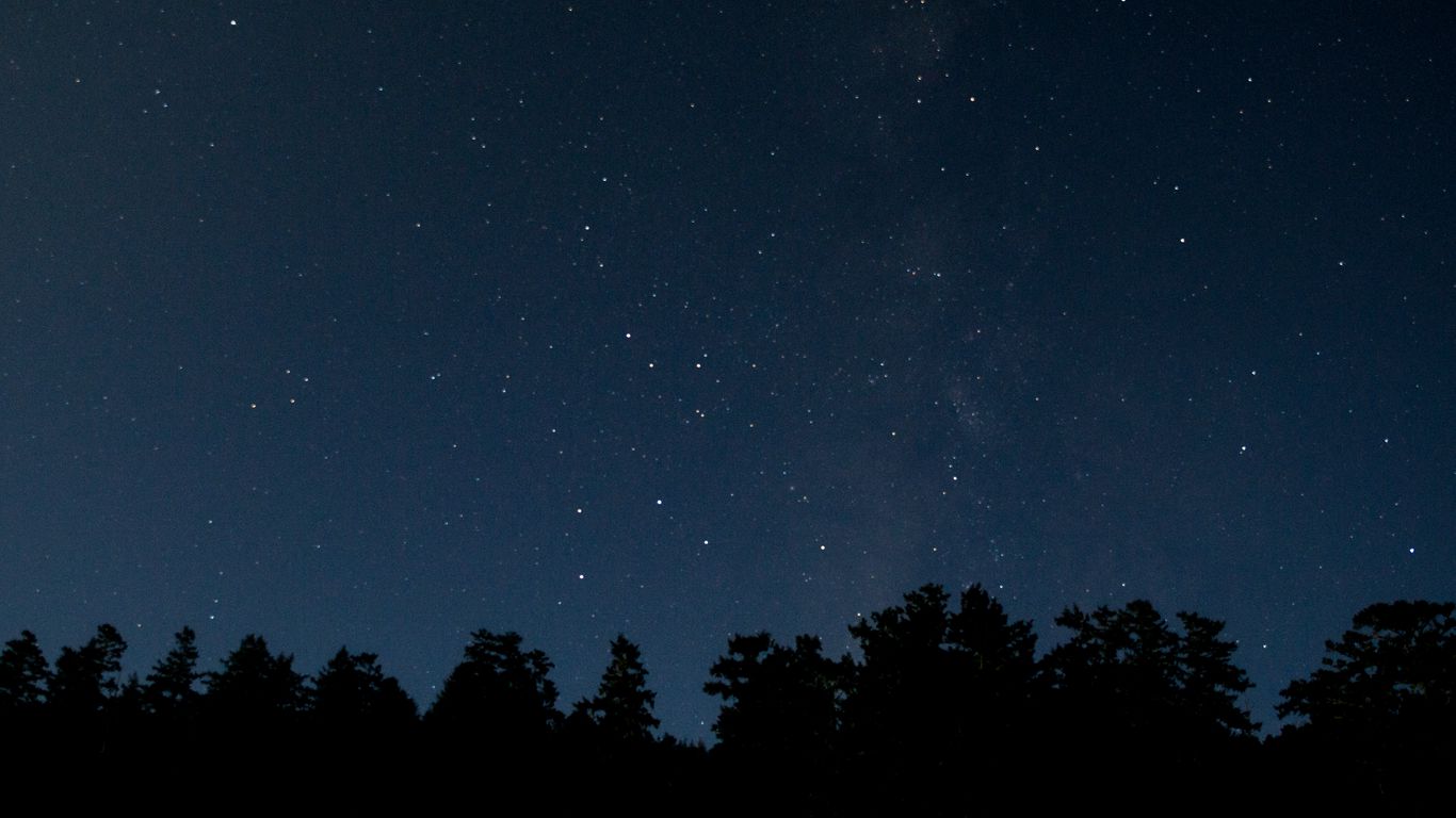 Download 1366x768 trees, night, stars, starry sky wallpaper, background tablet, laptop