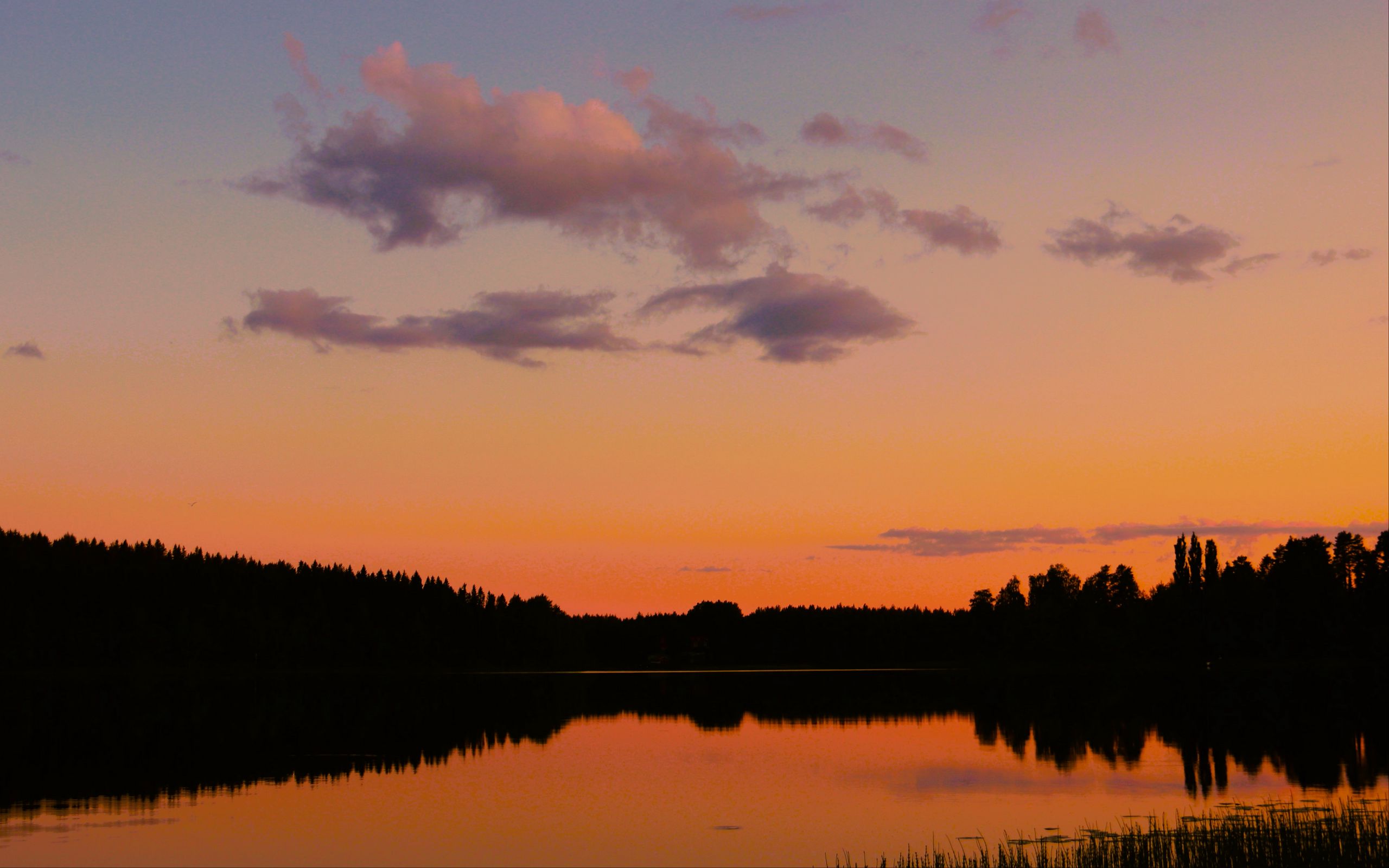 Download 2560x1600 trees, silhouettes, forest, lake, clouds, sky, sunset, landscape wallpaper, background widescreen 16:10