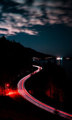 Download 240x400 turn, night, mountains, sky, road wallpaper, background nokia asha 311, samsung galaxy 580, omnia, lg kp500