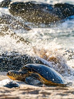 Download 240x320 turtle, animal, shell, spray, sea wallpaper, background old mobile, cell phone, smartphone