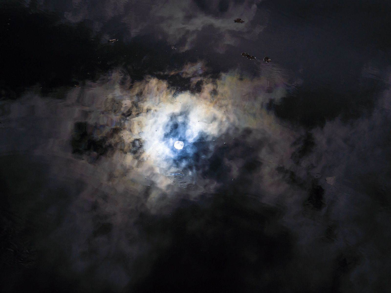 Download 1600x1200 water, reflection, moon, clouds wallpaper, background standard 4:3