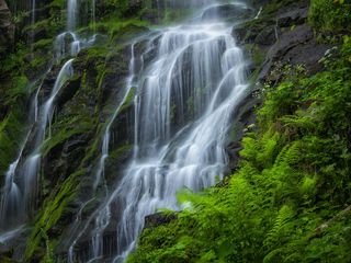 Download 320x240 waterfall, beautiful, rocks, fern, moss wallpaper, background nokia e72, e71, asha, alcatel onetouch