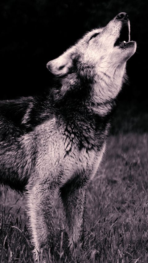 Download 480x854 wolf, howl, predator, bw wallpaper, background nokia lumia 630, sony ericsson xperia
