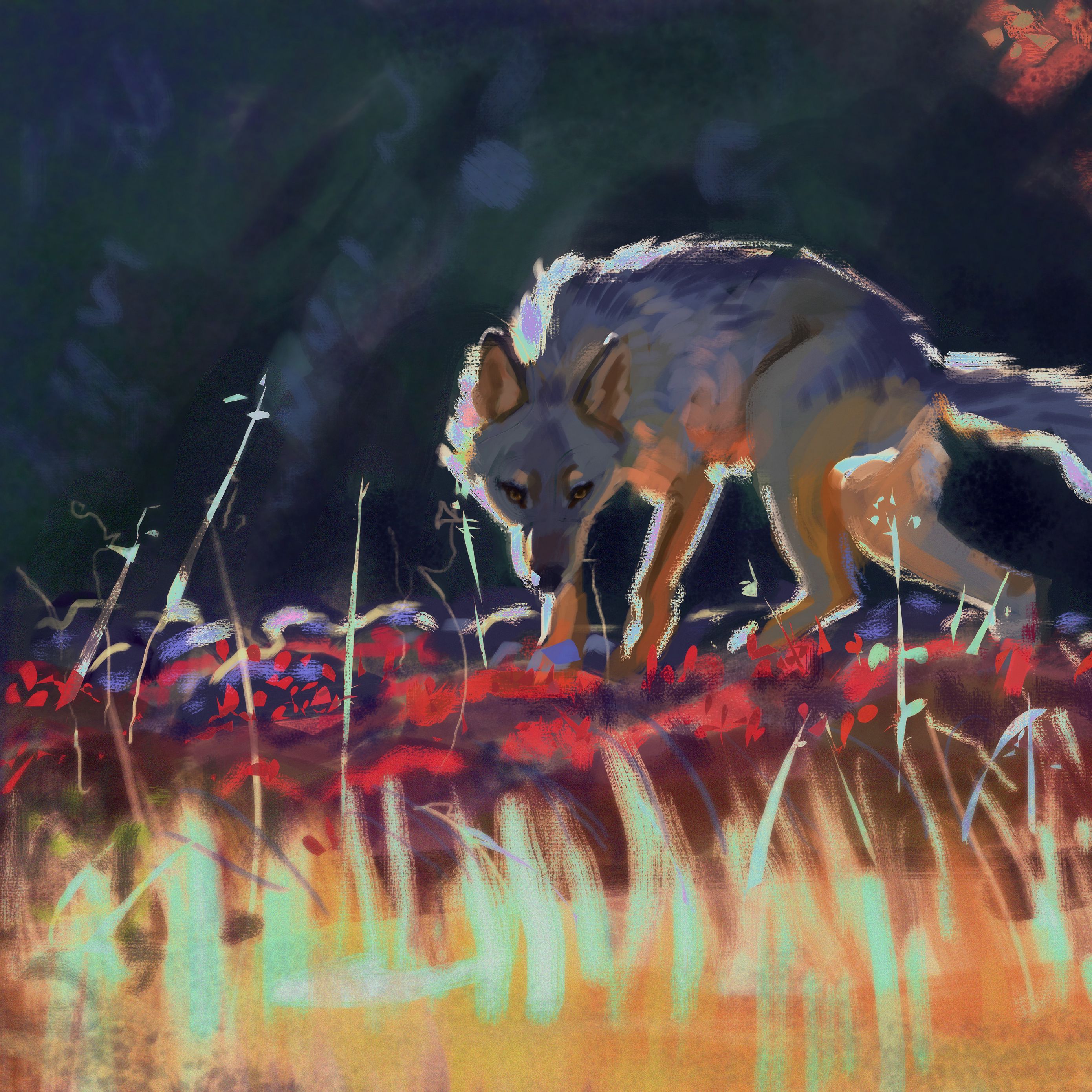 Download 2780x2780 wolf, predator, grass, wildlife, art wallpaper, background ipad air, ipad air 2, ipad 3, ipad 4, ipad mini 2, ipad mini 3, ipad mini 4, ipad pro 9.7" for parallax
