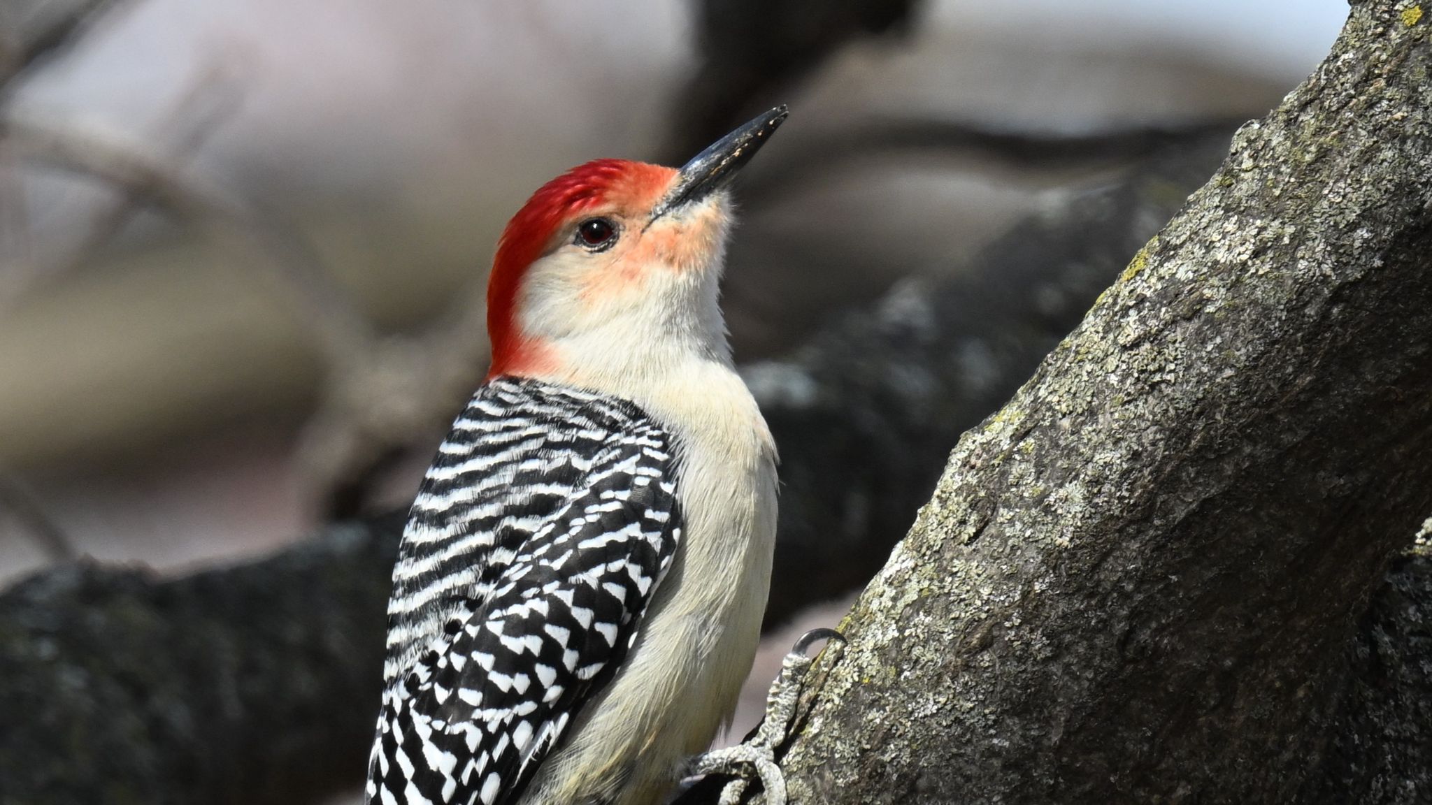 Download 2048x1152 woodpecker, bird, branch, tree, blur wallpaper, background ultrawide monitor