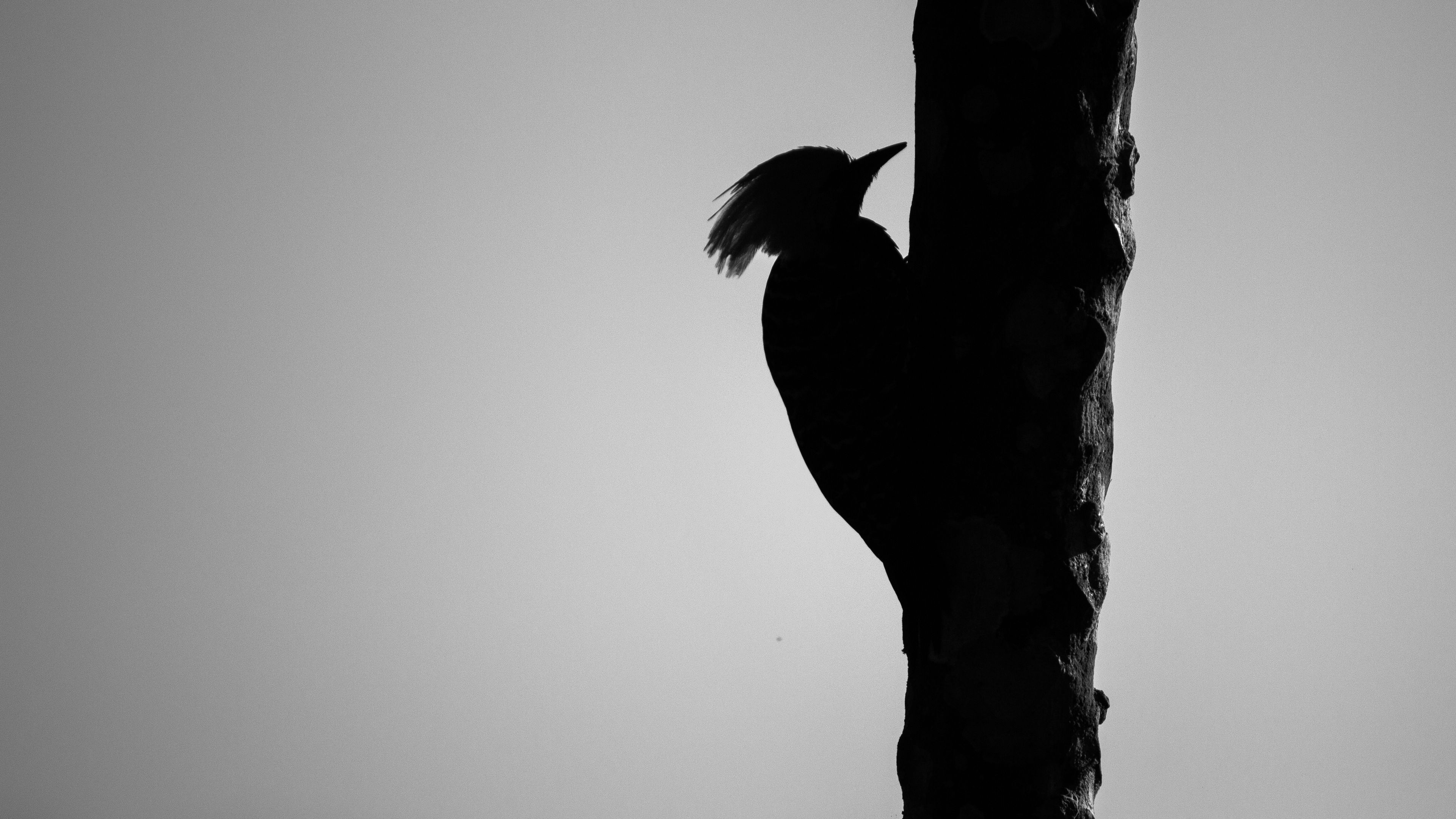 Download 3840x2160 woodpecker, bird, bw, silhouette wallpaper, background 4k uhd 16:9
